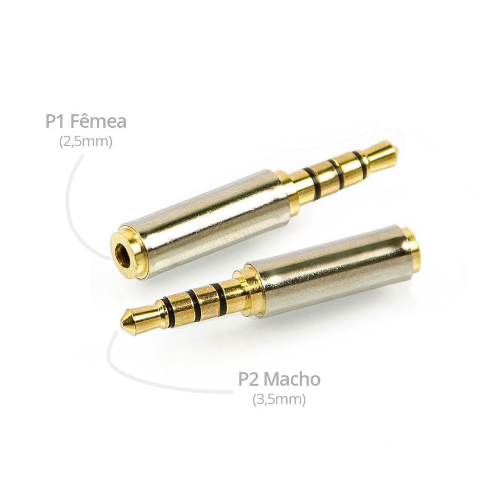 Adaptador P1 Fêmea Para P2 Macho - Banhado em Ouro