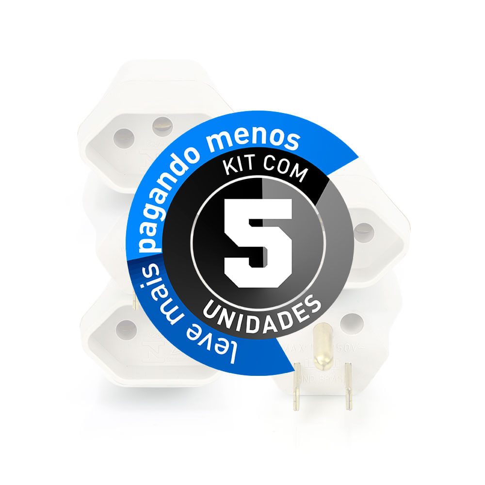 Adaptadores tomada 3 pinos para novo padrão - Kit com 5