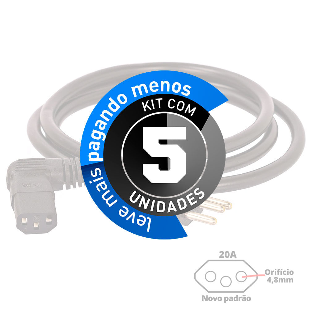Cabo de Força 90º Graus 20A - 1,5 Metro - Kit com 5