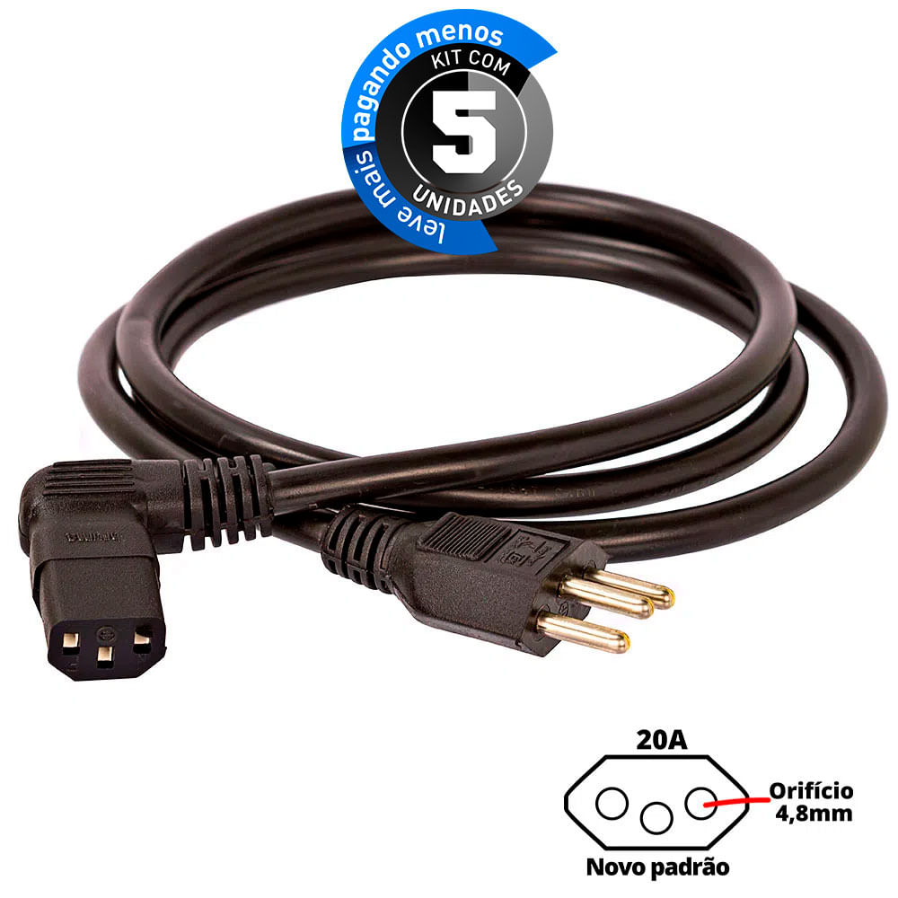 Cabo de Força 90º Graus 20A - 3 Metros - Kit com 5