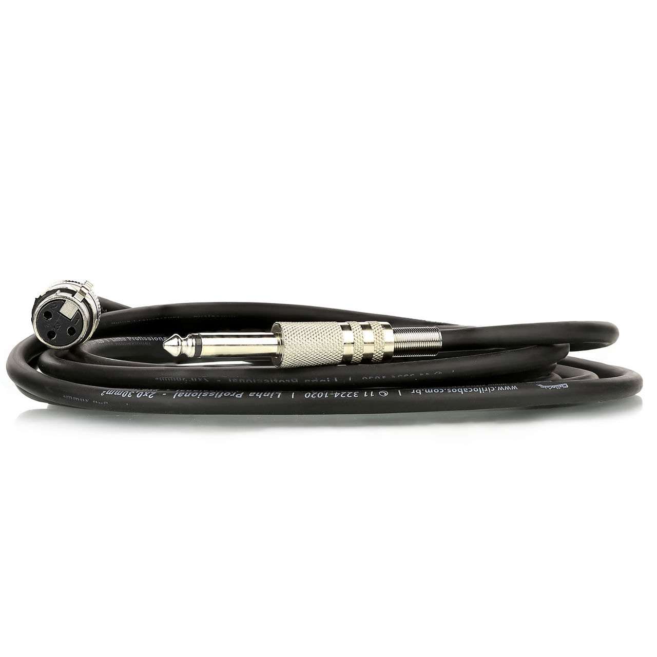 Cabo de Microfone XLR para P10 Mono - Preto - 1 Metro