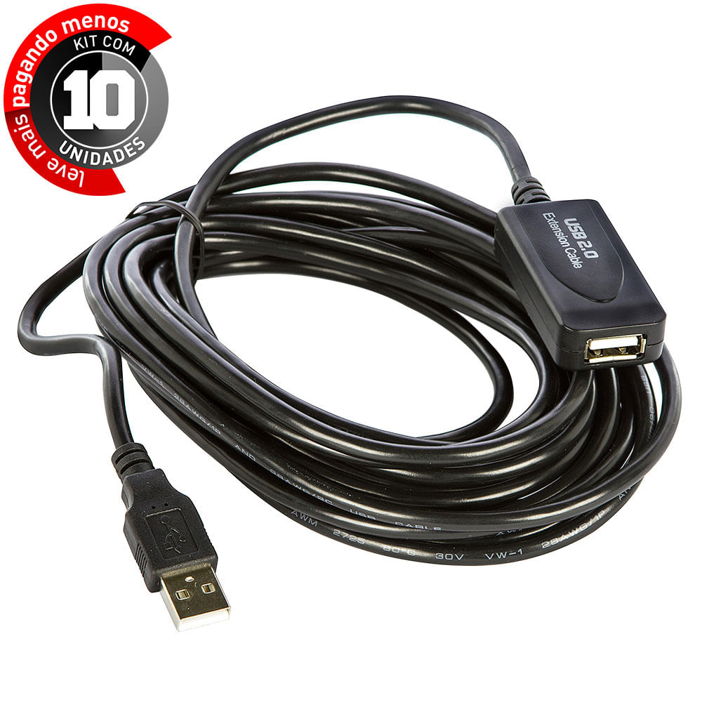 Extensão USB 2.0 Amplificado 5m - Cirilo Cabos - Kit com 10