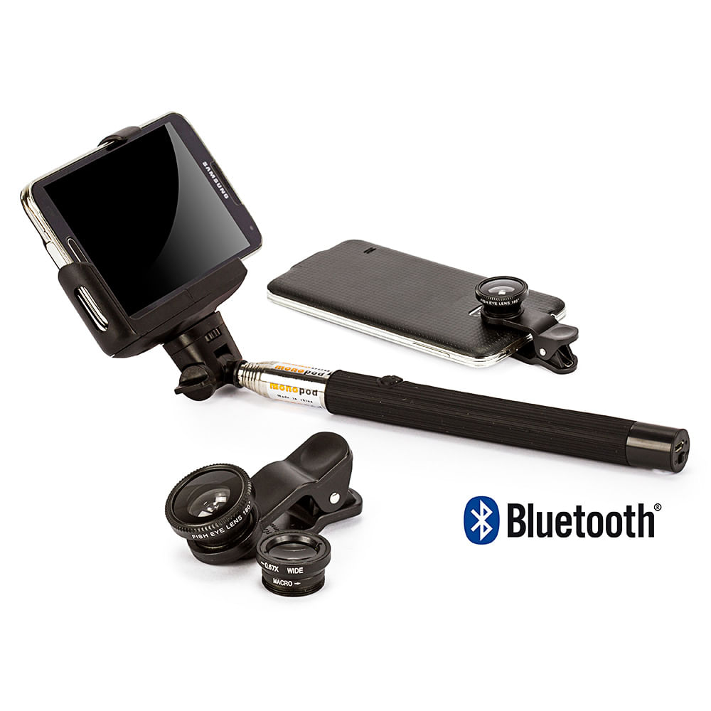 Pau Selfie Bastão Monopod Z07-5 + 3 Lentes Universal - Preto